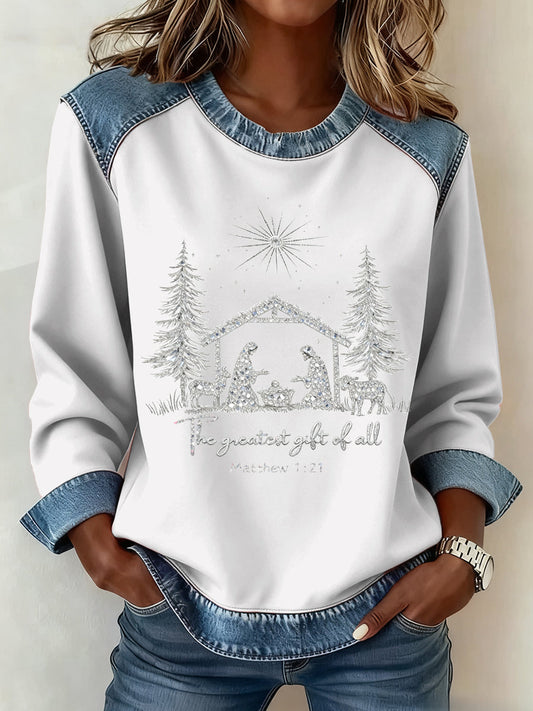 Women's Christmas Pattern Patchwork Art Sweatshirt