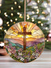 Christian Cross And Wild Flower Printed Acrylic Decorative Ornament