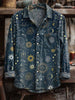 Men's Retro Sun and Moon Print Long Sleeve Shirt