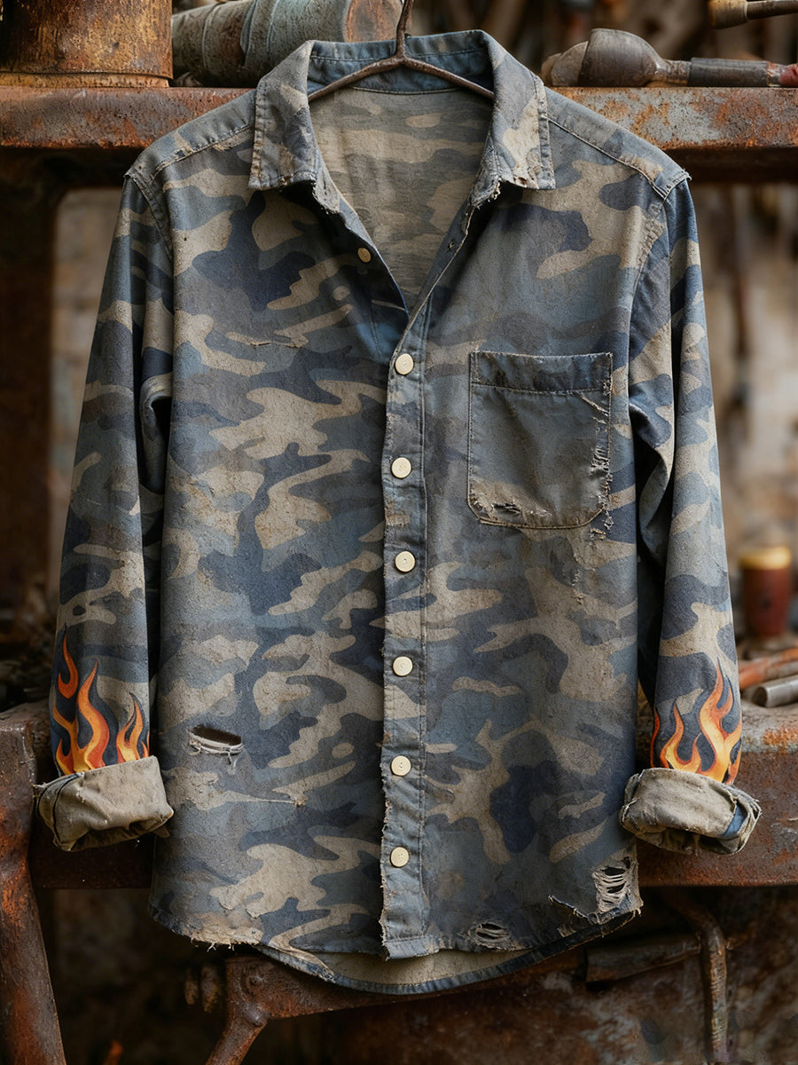 Men's Vintage Christmas Art Print Casual Comfort Long Sleeve Shirt