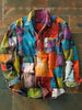 Unisex Multicolor Irregular Geometric Art Print Lapel Long Sleeve Pocket Shirt