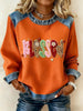 Women's Blessed Thanksgiving Printed Denim Patchwork Waffle Top