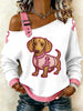 Women's Breast Cancer Dachshund Printed One Shoulder Suspender Casual Sweater