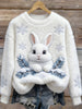 Women's Cute Bunny Art Round Neck Cozy Flannel Sweatshirt