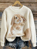 Women's Cute Bunny Art Round Neck Cozy Flannel Sweatshirt