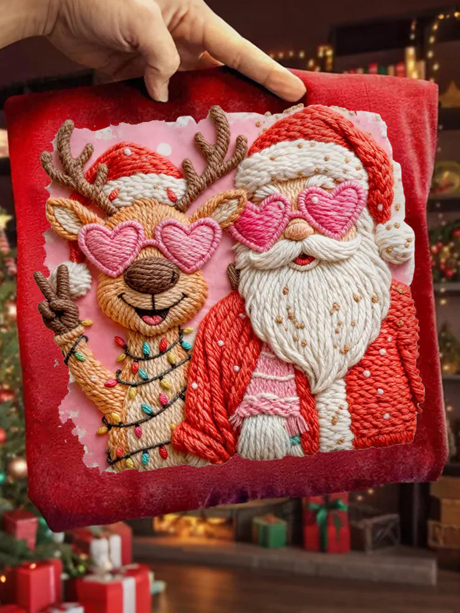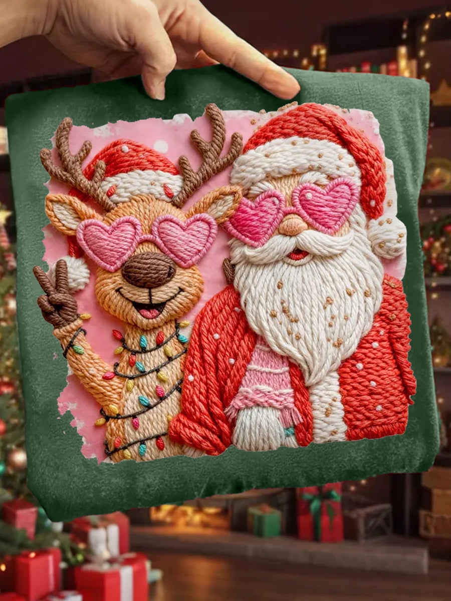 Women's Faux Yarn Merry Christmas Santa Claus Print Casual Sweatshirt
