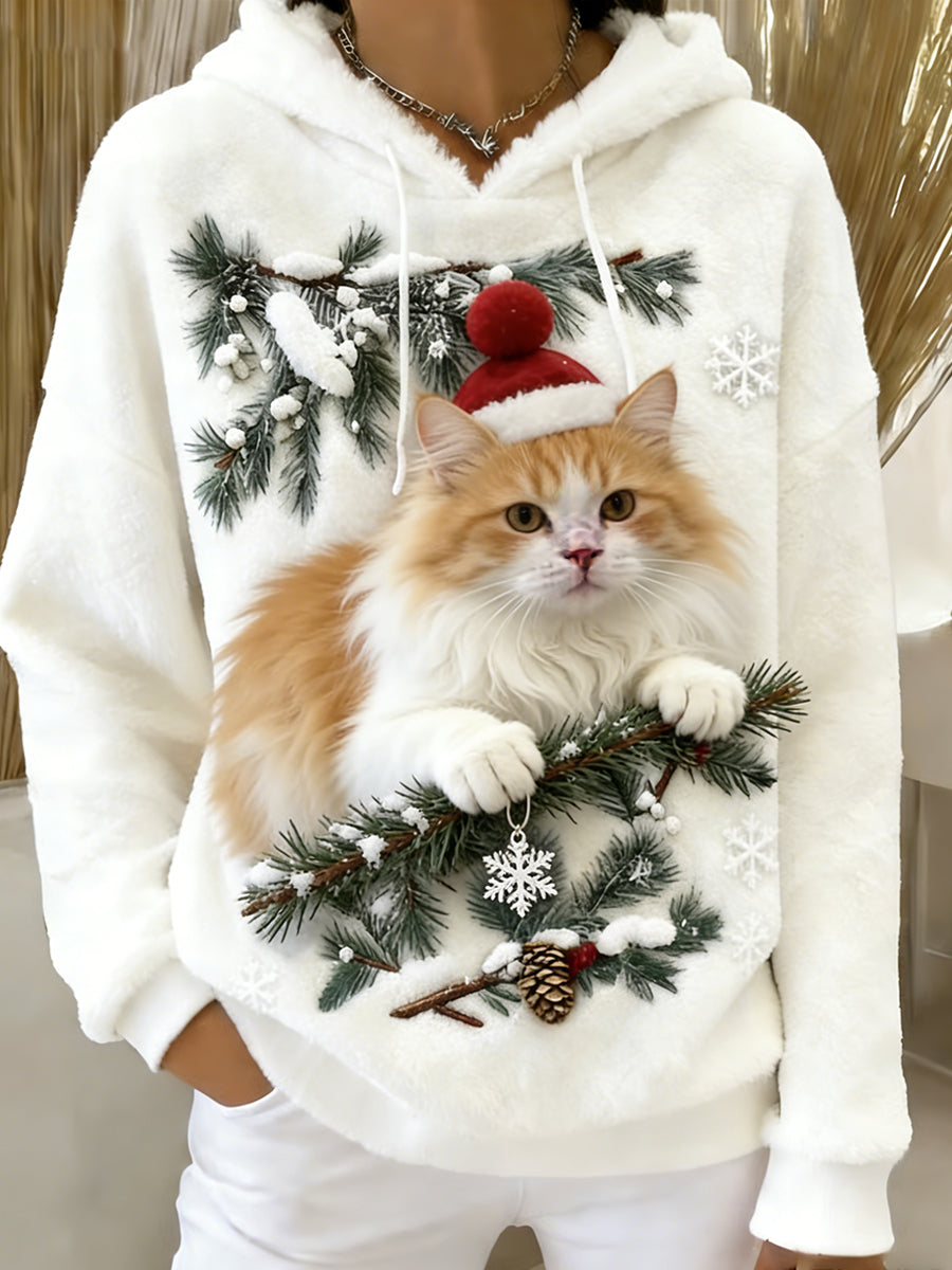 Women's Retro Animal Art Print Comfortable Flannel Hooded Sweatshirt