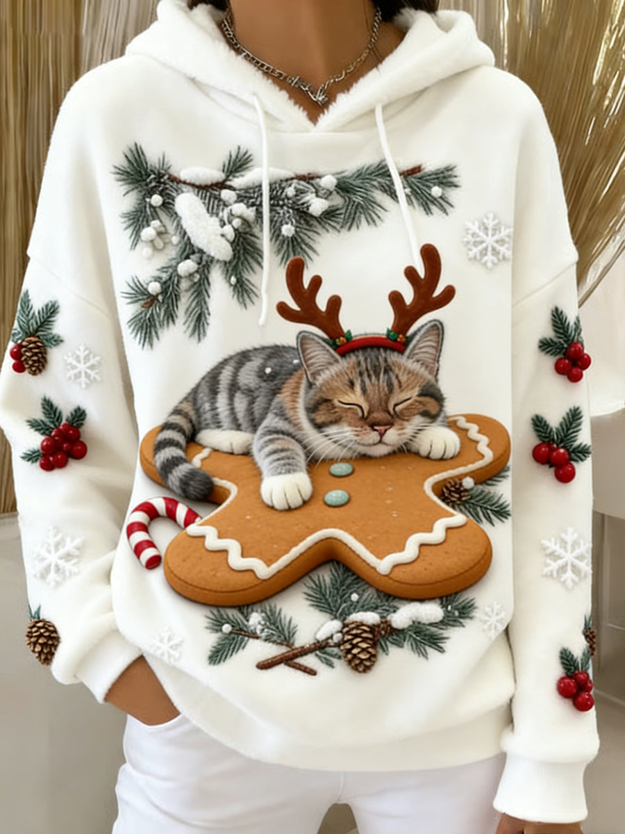Women's Retro Animal Art Print Comfortable Flannel Hooded Sweatshirt