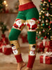 Women's Retro Christmas Santa Fun Snowman Art Patchwork Sports Stretch Leggings