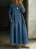 Women's Solid Color Peter Pan Collar Long-sleeved Casual Loose Denim Dress