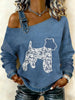 Women's Vintage Lace Texture Dog Print Casual Off-Shoulder Sweatshirt