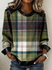 Women's Vintage Plaid Pattern Leather Patchwork Sweatshirt
