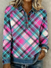 Women's Vintage Plaid Print Denim Patchwork Top